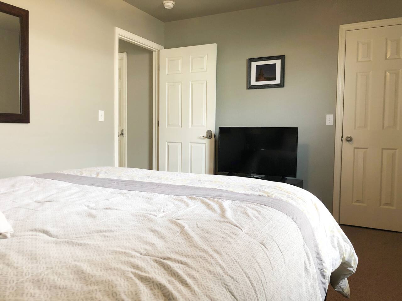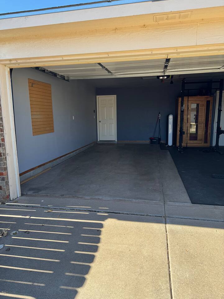Guests can access the property with a code that opens the front door. This code is sent three days prior to your arrival. When booking, you're getting a private stay in a place to call your own. Bedrooms are available depending on your needs and the number of guests you book. Please make sure you book the total number of guests who will be staying overnight as there are additional fees for more than two guests. There is a garage attached to the house. Half of the garage functions as a free weight gym, the other half as parking for guests. You have free access to the garage and gym. The garage door opener is located on the entry table.